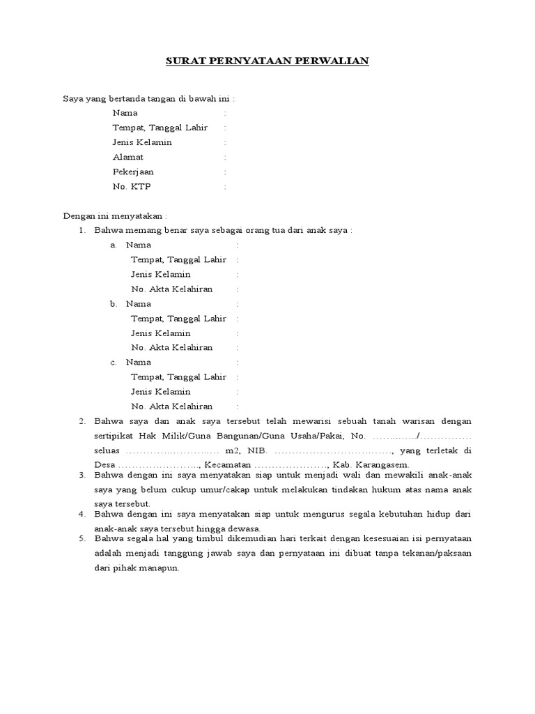 Contoh Surat Permohonan Perwalian Di Pengadilan Negeri Bagi Awam Abi Awam Bicara from 1.bp.blogspot.com Si a mempunyai sebuah rumah (status shm a.n. Surat pernyataan perwalian pada perdata : Pada umumnya perwalian mempunyai 2 asas yaitu : Contoh surat pernyataan perwalian anak dibawah umur. Mereka yang belum dewasa dan tidak berada dibawah kekuasaan orang. Biasanya, penunjukan seorang wali akan didasarkan pada isi surat wasiat dari orang tua. Pengertian perwalian ( voogdij) perwalian adalah pengawasan terhadap anak yang dibawah umur, yang tidak berada dibawah kekuasaan orang tua serta pengurusan benda atau kekayaan anak tersebut diatur walian.1 perwalian menurut kuh perdata yaitu pada pasal 330 ayat (3) menyatakan: Surat pernyataan pada dasarnya dibuat untuk memperkuat pernyataan lisan agar memiliki payung hukum.